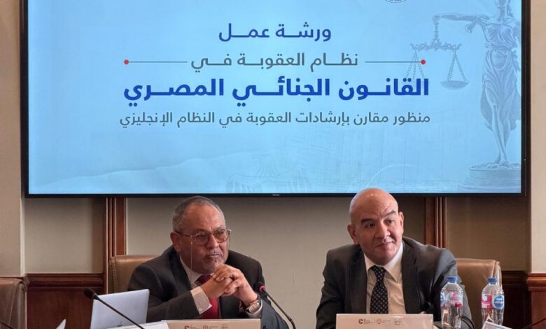واستعرض القاضي الدكتور أحمد أبو هشيمة، القاضي بمحكمة النقض وبقطاع التشريع بوزارة العدل، دور محكمة النقض في الرقابة على إعمال السلطة التقديرية في تحديد العقوبة، موضحًا الحدود الفاصلة بين سلطة محكمة الموضوع ورقابة محكمة النقض، فيما تناولت القاضية الدكتورة داليا حجازي، الرئيس بمحكمة جنح اقتصادية القاهرة، موضوع تقدير العقوبة في قضاء الجنح، مع التركيز على خصوصية هذا النوع من القضايا وتعدد أنماطها، وقدمت الدكتورة هند حنفي مداخلة ثانية حول إرشادات وتحديات تقدير العقوبة بالتطبيق على قضاء الجنح، من خلال نماذج عملية، لا سيما جرائم السرقة، بما أبرز أوجه الاستفادة من التجربة الإنجليزية، واختتمت أعمال الورشة بجلسة مناقشات وتعقيبات ختامية.