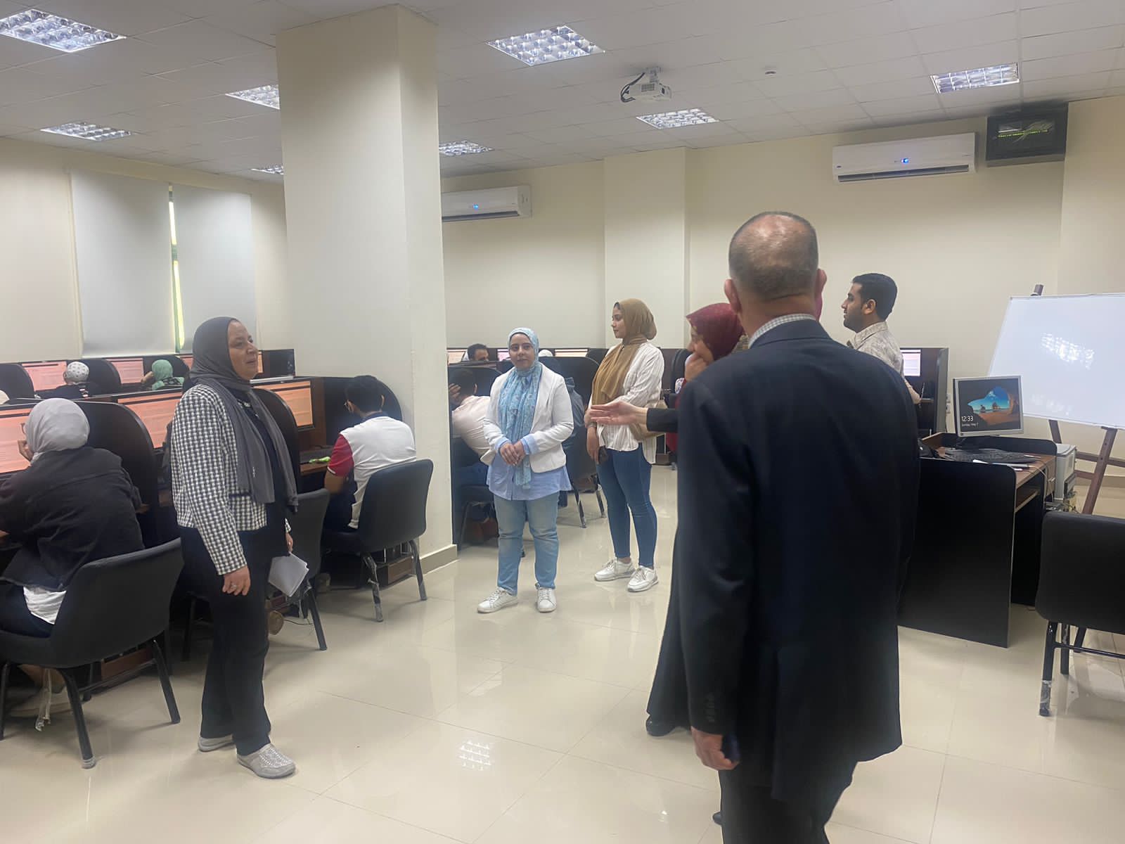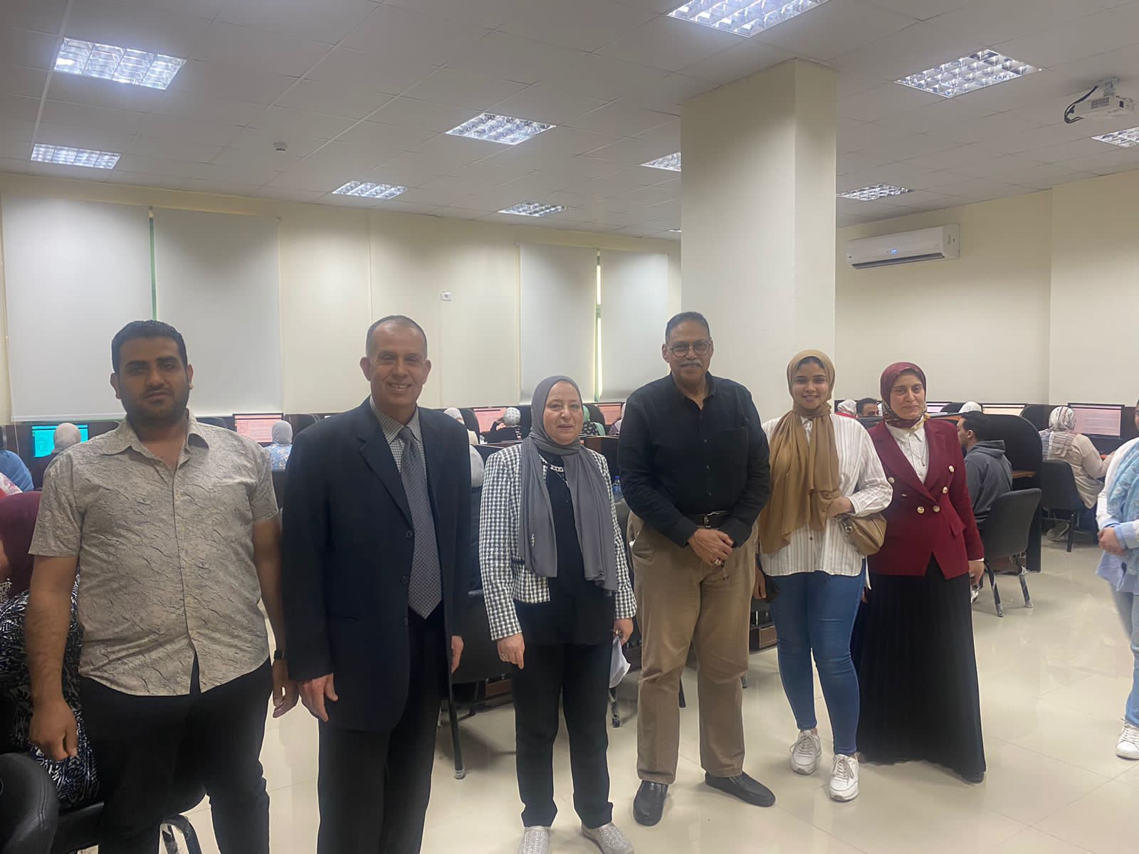 في سابقة فريدة من نوعها وفي جو ساده الهدوء والنظام .أجرى  الامتحان الالكتروني في ١٥ معمل من معامل الكمبيوتر بالجامعة وذلك لطلاب الامتياز كنواه لتدريب خريجيها علي إمتحانات مزاولة المهنة حيث تم انشاء بنك اسئلة يحقق معايير اختبارات مزاولة المهنة
