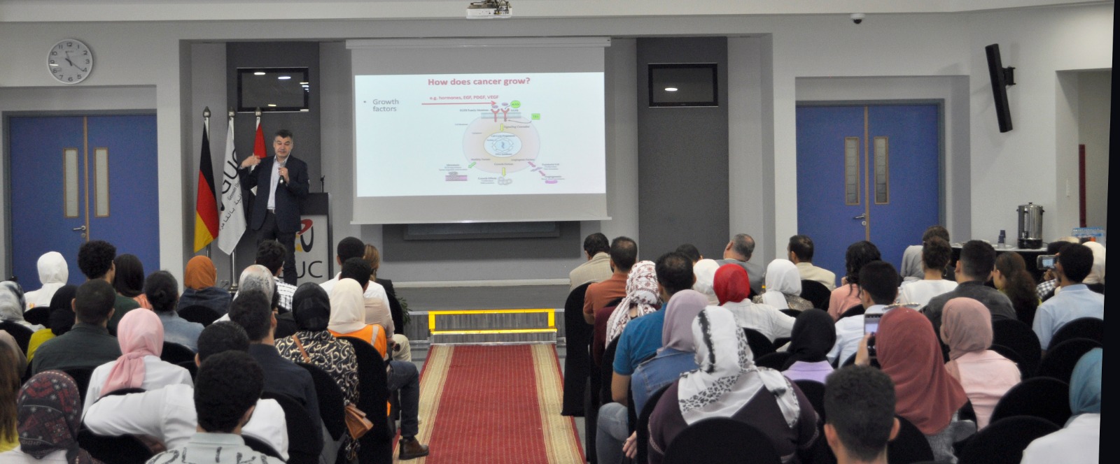 قالت ذلك الدكتورة هند الطيبى الأستاذ المساعد و رئيس مجموعة أبحاث علم الصيدلة الجيني واقتصاديات الدواء بكلية الصيدلية بالجامعة الألمانية ، والمشرف على فعاليات أعمال الورشة وأضافت بأنه تم مناقشة موضوع الورشة بإستفاضة من جانب الاساتذة العلماء المشاركين فى ورشة العمل وهم الأستاذة الدكاترة تامر النحاس أستاذ الأورام السريرية بالقصر العيني ، وليد عرفات أستاذ الأورام السريرية جامعة الإسكندرية ، لؤي قاسم أستاذ مساعد الأورام السريرية بالقصر العيني ، رامز رضا أستاذ علم الأعصاب جامعة عين شمس، دينا زمزم أستاذ علم الأعصاب جامعة عين شمس ، سامح سعد علي رئيس برنامج أبحاث بيولوجيا الأورام بمستشفى سرطان الأطفال 57357 ، محمد الحديدي أستاذ العلوم الطبية الحيوية بمدينة زويل، محمد حامد أستاذ المعلوماتية الحيوية والبيولوجيا الحسابية بالجامعة الألمانية بالقاهرة ، أولريك شتاين بمستشفى شاريتيه برلين ، ولفجانج والتر بمركز ماكس دلبروك للطب الجزيئي ببرلين ، سيباستيان توركي بمركز ماكس دلبروك للطب الجزيئي ببرلين.