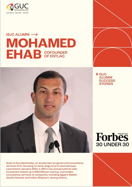 يوماً بعد يوم ً يتنامى دور شباب الجامعة الألمانية بالقاهرة في إحداث تغير في العديد من المجالات منها مجال ريادة الأعمال و التجارة الإلكترونية و تحقيق نجاحات ملموسة ، فقد أعلنت مجلة فوربس الشرق الأوسط في نسختها السادسة إختيار أثنين من أبناء الجامعة في قائمتها السنوية للمبدعين الشباب في المنطقة دون سن الثلاثين لعام 2023 ممن يحدثون تأثيرًا في العديد من المجالات ، فبرز أسم هذان الشابان محمد إيهاب – عمرو قوشتي – خريجي كلية هندسة وعلوم المواد عام 2018 دون سن الثلاثين في صدارة فئة التجارة الألكترونية و التمويل.