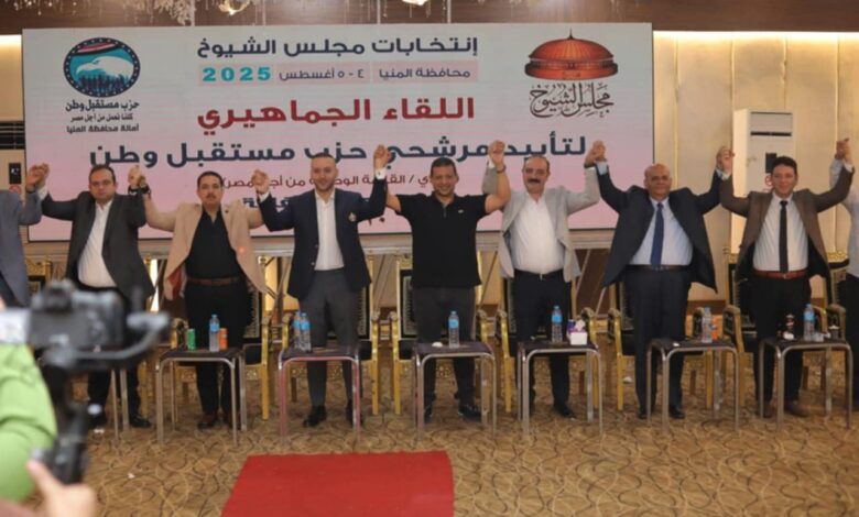 يستعد حزب “مستقبل وطن” بمحافظة المنيا، لتنظيم مؤتمر جماهيري حاشد غدا الجمعة وذلك بمركز شباب بني مزار – الساحة، في تمام الساعة السادسة مساءً، وذلك لدعم مرشحي الحزب في انتخابات مجلس الشيوخ.