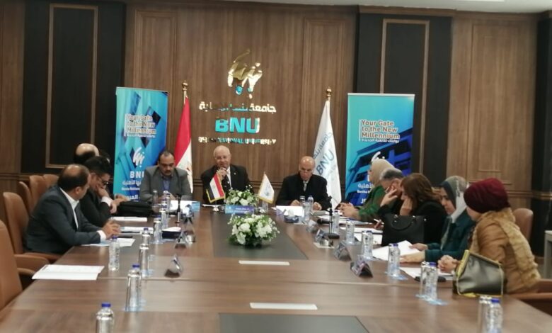 عقد مجلس جامعة بنها الأهلية، اجتماعه الشهري، برئاسة الدكتور جمال سوسة، القائم بعمل رئيس الجامعة ، وحضور الدكتور تامر سمير نائب رئيس جامعة بنها الحكومية لشئون التعليم والطلاب.