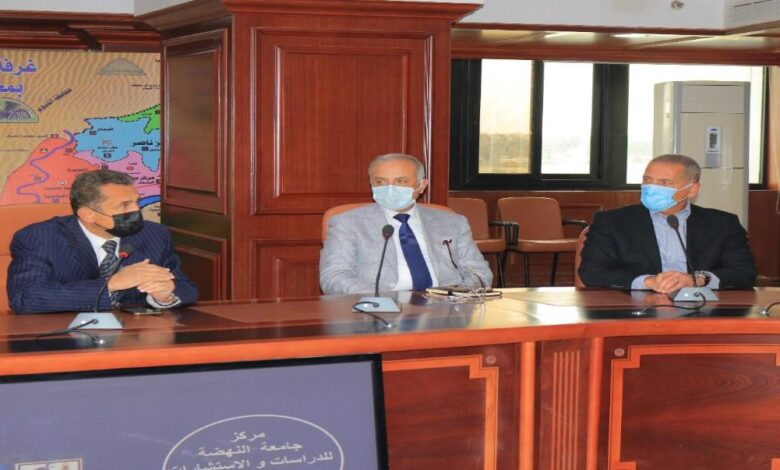 جدير بالذكر أنه قد قام الدكتور حسام الملاحي – رئيس جامعة النهضة، والمهندس محمد الرشيدي – رئيس مجلس الأمناء، وبحضور الدكتور سالم الخضري – عميد كلية الهندسة يوم الإثنين 8 فبراير 2021 بتسليم الدكتور محمد هاني غنيم – محافظ بني سويف تصميم خمسة مشروعات تنموية جديدة من تصميم مركز النهضة للدراسات والاستشارات الهندسية إهداء من جامعة النهضة لمحافظة بنى سويف وذلك بمقر ديوان عام المحافظة.