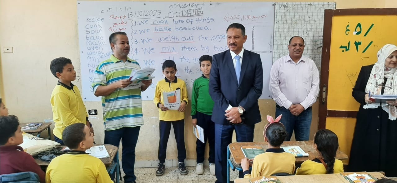 حيث قام بتفقد الفصول الدراسية واطمئن علي تسليم الكتب الدراسية دون قيدها بالمصروفات .