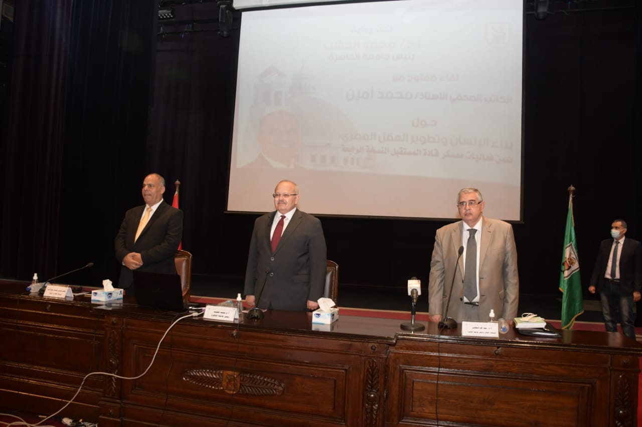 استضافت جامعة القاهرة برئاسة الدكتور محمد عثمان الخشت، صباح اليوم، الكاتب الصحفي محمد أمين، للحديث عن “بناء الإنسان وتطوير العقل المصري” وذلك ضمن النسخة الرابعة من معسكر قادة المستقبل الذي تنظمه الجامعة للطلاب في إطار مشروع جامعة القاهرة الذي وضعته منذ أغسطس 2017 لتطوير العقل المصري وبناء جيل جديد من الشباب يمتلك عقلًا علميًا نقديًا واعيًا لديه القدرة على المساهمة في نهضة وطنه ليكون في مصاف الدول المتقدمة.