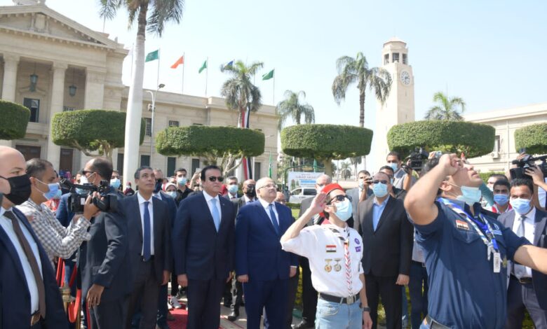 مع انطلاقة العام الجامعي الجديد: عبد الغفار والخشت يشهدان تحية العلم وعزف النشيد الوطنى أمام قبة حرم جامعة القاهرة