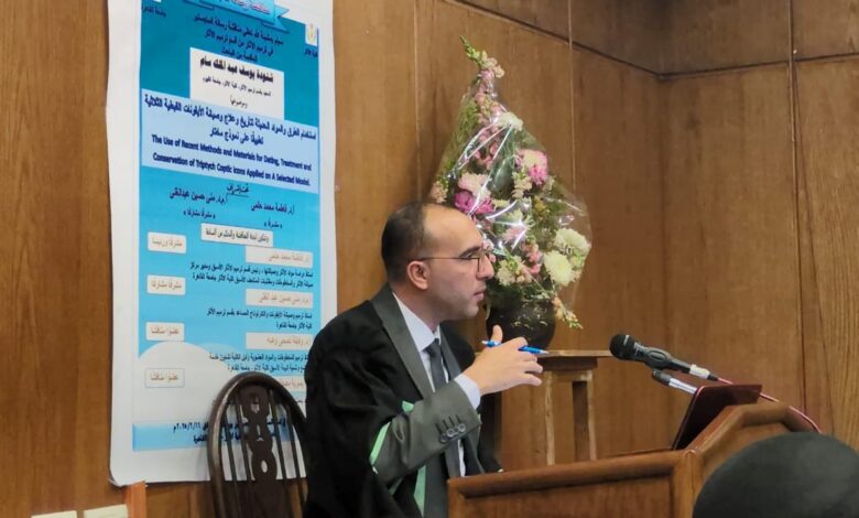 شهدت كلية الآثار بجامعة القاهرة مناقشة رسالة ماجيستير بعنوان “إستخدام الطرق والمواد الحديثة لتأريخ وعلاج وصيانة الأيقونات القبطية الثلاثية تطبيقًا على نموذج مختار”، للباحث شنوده يوسف عبدالملك المعيد بقسم ترميم الآثار بكلية الأثار جامعة الفيوم.