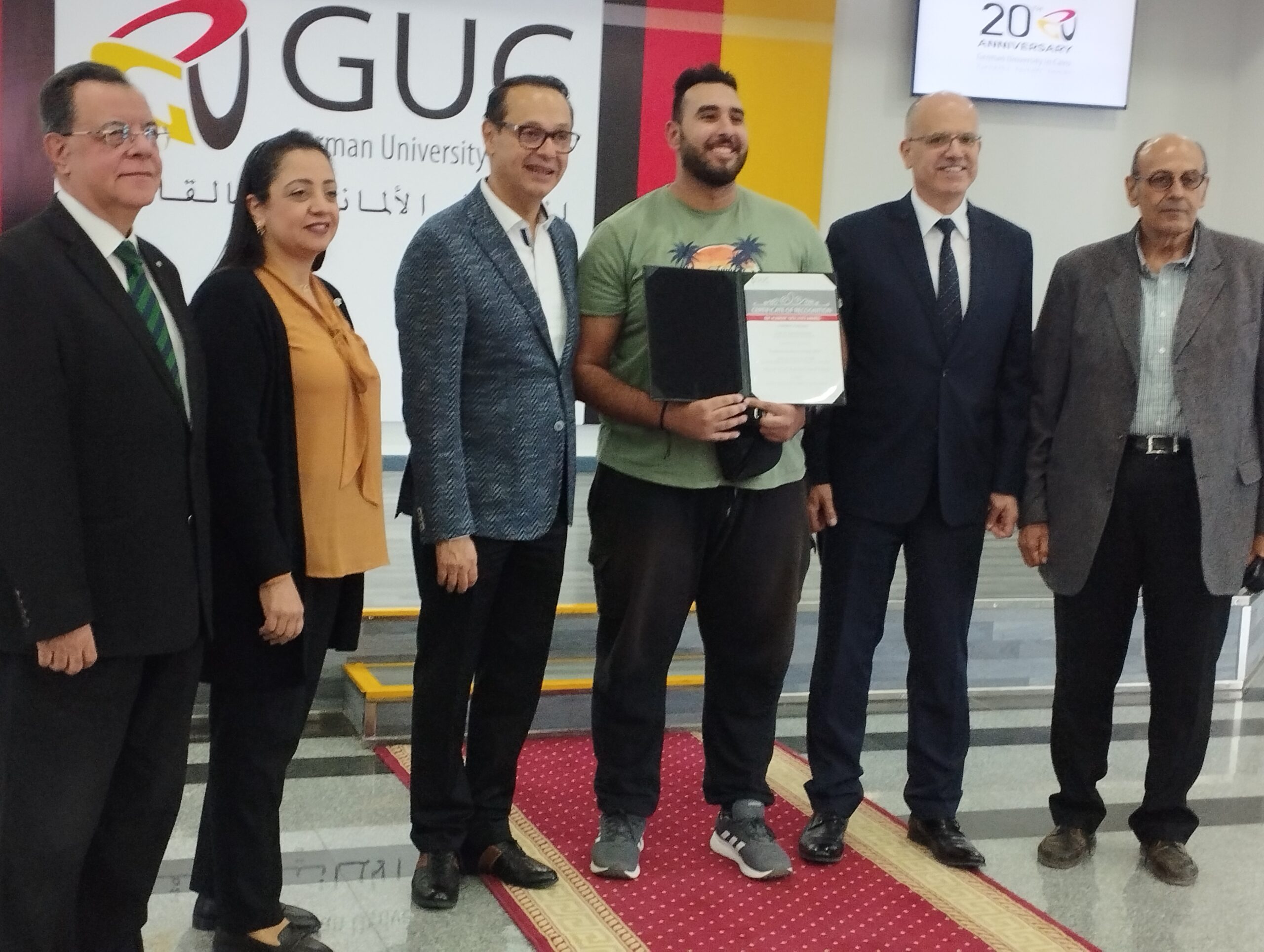 قام الدكتور أشرف منصور رئيس مجلس أمناء الجامعة الالمانية بالقاهرة والدكتور ياسر حجازى رئيس الجامعة بتوزيع منح التفوق الدراسي والرياضي لهذا العام 2023 ، التي تخُصص لأوائل طلاب كليات الجامعة لتميزهم اكاديمياً و تحقيقهم المعدل التراكمي المحدد تقديره من قبل الجامعة خلال فترة دراستهم الأكاديمية و المعملية بالجامعة ، والبالغ عددهم 41 طالباً في كافة تخصصات أقسام كليات ( هندسة و علوم المواد ، هندسة وتكنولوجيا الإعلام ، هندسة وتكنولوجيا المعلومات ، تكنولوجيا الإدارة ، العلوم التطبيقية و الفنون ، الصيدلة و التكنولوجيا الحيوية ، الحقوق و الدراسات القانونية) تقديراً وتشجيعاً لهم وحافزاً لتفوقهم الدراسي ، بجانب تخصيص 20 منحة للطلاب الحائزين على البطولات في الألعاب الرياضية المتنوعة ، والذي بموجبه يُتاح للحاصل على منحة التفوق الأكاديمي و الرياضي السفر إلى المانيا.