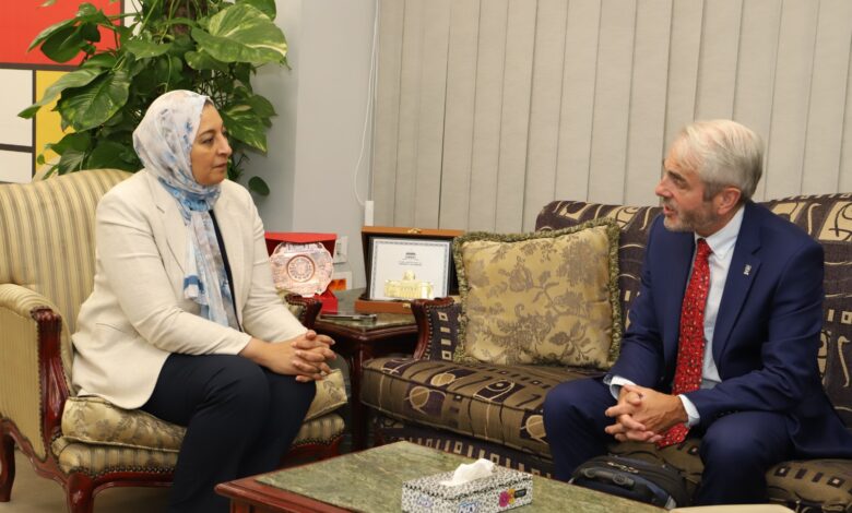 نائب رئيس جامعة عين شمس تستقبل عميد المشاركة العالمية لمنطقة الشرق الأوسط وشمال أفريقيا بجامعة جلاسكو بالمملكة المتحدة