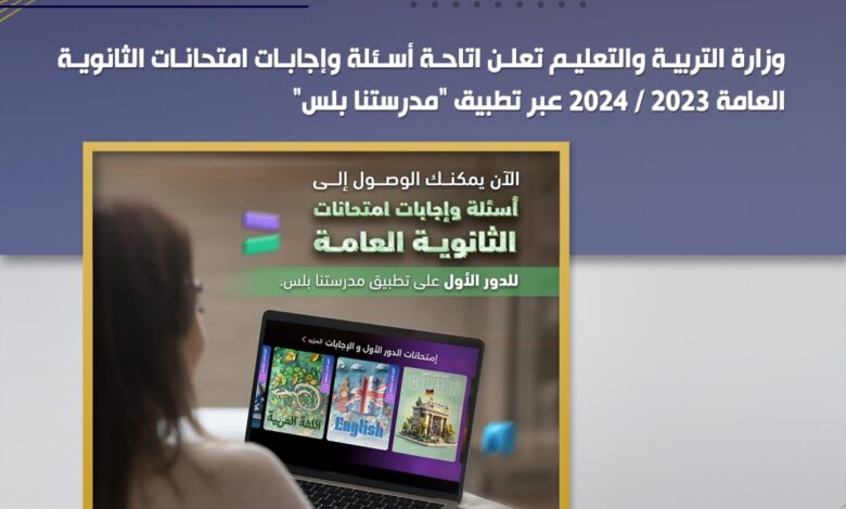 وزارة التربية والتعليم تعلن اتاحة أسئلة وإجابات امتحانات الثانوية العامة ٢٠٢٣ / ٢٠٢٤ عبر تطبيق “مدرستنا بلس”