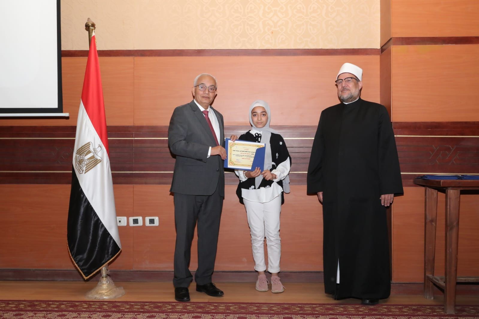 وفى ختام الحفل، تم تكريم الطلاب الفائزين في المسابقة وعددهم (74) فائزًا شاركوا في المسابقة، وحصل كل فائز على جائزة مالية مقدمة من وزارة الأوقاف، وشهادة تقدير، ومجموعة كتب من إصدارات المجلس الأعلى للشؤون الإسلامية.