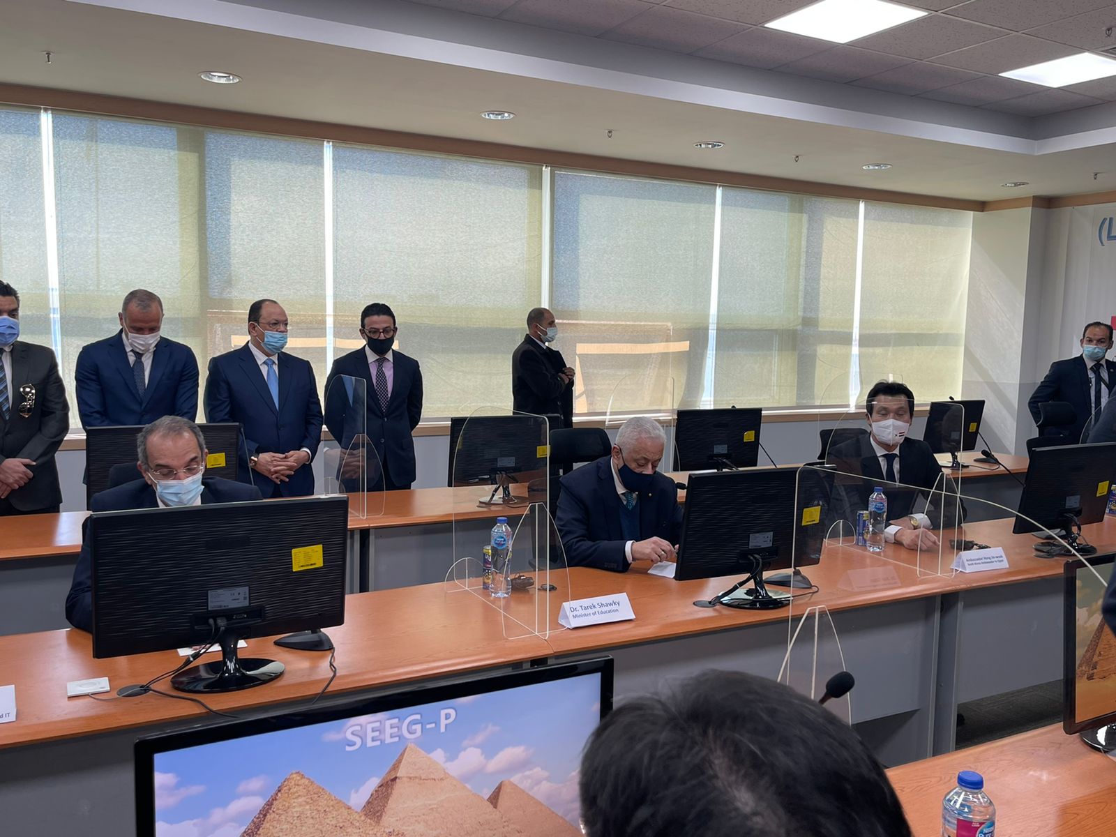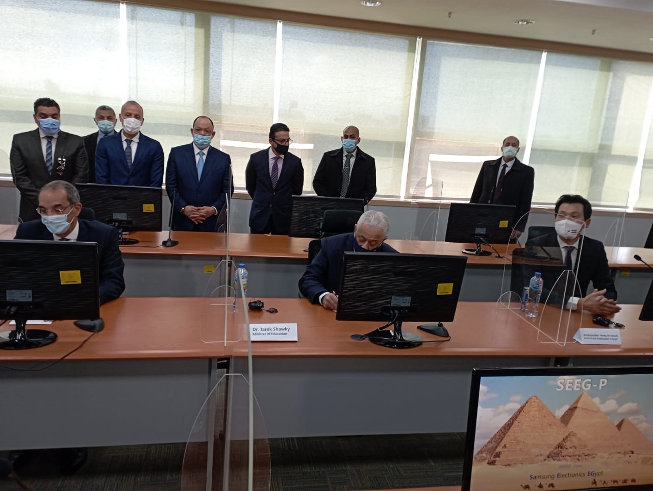 وتفقد الوزيران ومحافظ بني سويف وسفير كوريا، الموقف التنفيذي لمصنع تصنيع التابلت التعليمي بمصنع الشركة بمنطقة كوم أبوراضي الصناعية، والذي يوفر أجهزة الحاسب اللوحي من التابلت الخاص بتطوير منظومة التعليم الثانوي لصالح وزارة التربية والتعليم، تفعيلًا للتعاقد المبرم بين الوزارة والشركة العالمية باستثمارات تصل لـ30 مليون دولار.
