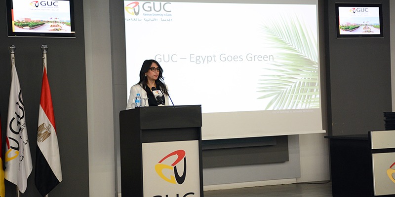 وقد أعربت فؤاد عن سعادتها بالمشروعات المتميزة لطلاب الجامعة الألمانية بالقاهرة والتى ركز معظمها على المخلفات البلاستيكية ذات التأثيرات السلبية على المسطحات المائية والكائنات الحية والتوازن البيئى .