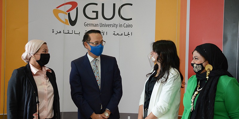 أستقبل الدكتور أشرف منصور رئيس مجلس أمناء الجامعة الألمانية بالقاهرة ، صباح الأثنين الماضي الموافق 12 ابريل 2021 ، الدكتورة ياسمين فؤاد وزيرة البيئة في احتفالية تسليم شهادات تقدير لعدد 24 طالباً بكليتي تكنولوجيا الإدارة و العلوم التطبيقية و الفنون ، حيث قاموا على مدار فصل دراسي كامل بتفيذ خطط تسويقية تمت تحت شعار Egypt Goes Green عبر مواقع التواصل الإجتماعي للترويج لمنتجات صديقة للبيئة خاصة بشركات قائمة في السوق المصري لدعوة المواطنين على استخدامها بديلاً لمثيلتها المصنوعة من مادة البلاستيك الضارة للبيئة ذات الاستخدام الأوحد ، حيث شملت المنتجات (أقنعة قطنية معاد تدويرها وقابلة للغسل من انتاج شركة أب فيوز Up-Fuse التي اسستها يارا ياسين ورانيا رافع خريجتي كلية الفنون التطبيقية بالجامعة – حقائب تسوق صديقة للبيئة من انتاج شركة جٌماش Gomash – وشفاط للمشروبات مصنع من مواد نباتية طبيعية مثل نشا الذرة او قصب السكر من انتاج شركة Eearthly ، وجاء ذلك تحت إشراف الدكاترة احمد وهبي نائب عميد كلية العلوم التطبيقة و الفنون لشؤون الطلاب و سارة الديب الأستاذ مساعد بكلية تكنولوجيا الإدارة وبرعاية الدكتور إيهاب كامل أبو الخير ، وسابينا مولر عميدي الكليتين.