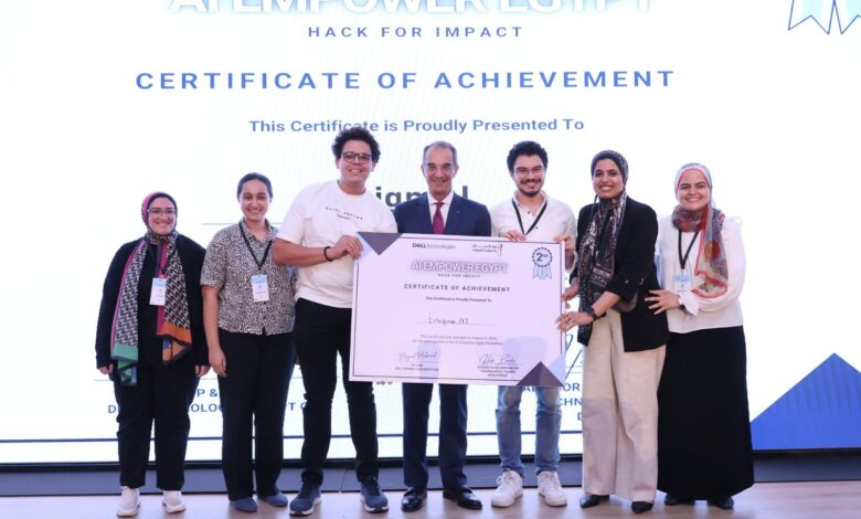 وأشار الوزير في كلمته التي ألقاها في هذه المناسبة إلى أن وزارة الاتصالات وتكنولوجيا المعلومات مستمرة في دعم مثل هذه المحافل التي تكرس تفوق قطاع الاتصالات وتكنولوجيا المعلومات وتصقل القاعدة الأساسية التي يرتكز عليها هذا النجاح والمتمثل فى العقول البشرية المُدربة والكوادر الشابة، موضحاً أن استراتيجية بناء القدرات الرقمية ترتكز على مجموعة من العناصر التي تحققت في الهاكثون، أولها اختيار تخصصات الاتصالات وتكنولوجيا المعلومات الحديثة التي يتطلبها سوق العمل المحلي والدولي والتي أضحت ركيزة أساسية للنهضة المعلوماتية؛ حيث تركز المبادرة على الذكاء الاصطناعي والذي أدى إلى تسارع غير مسبوق في وتيرة الابتكارات، خاصة مع ظهور الذكاء الاصطناعي التوليدي، ثانياً الدمج بين الدراسة التقنية والتطبيق العملى حيث ركز الهاكثون على ابتكار حلول باستخدام الذكاء الاصطناعي بالتطبيق على تحدي يواجه كل دول العالم ويفرض نفسه على كافة المحافل الدولية وهو موضوع إدارة مخلفات الطعام؛ مضيفا أن الركيزة الثالثة تتمثل فى الشراكة فى التدريب بعنُصريٍه النظري والعملي وذلك من خلال الشراكة مع شركة “دل” العالمية، والجامعات الخمس التى تعد من كبريات الجامعات المصرية؛ معرباً عن تطلعه لانضمام المزيد من الجامعات لمبادرة بناء القدرات والتي تضمنت في دورتها الثانية التطبيق العملي لاستخدامات مجال الذكاء الاصطناعي فى ابتكار حلول تكنولوجية فى 5 مجالات حيوية هى الزراعة الذكية، والنقل الذكي، وحلول الحكومة الذكية، وتقنيات الرعاية الصحية الرقمية، والاقتصاد الذكى.