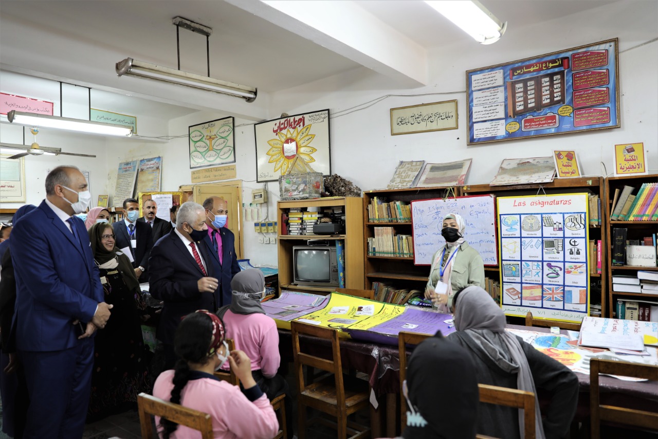 رافق الوزير خلال الجولة اللواء يسرى عبد الله مدير الهيئة العامة للأبنية التعليمية، ومحمد عطية مدير مديرية التربية والتعليم بالقاهرة، و ياسر عمر مدير إدارة مصر القديمة.