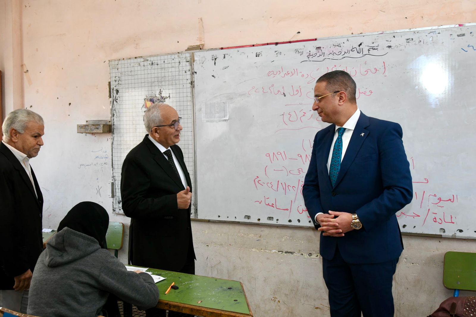 وزير التربية والتعليم ومحافظ الفيوم يتفقدان سير أعمال لجان امتحانات الشهادة الإعدادية بالمحافظة
