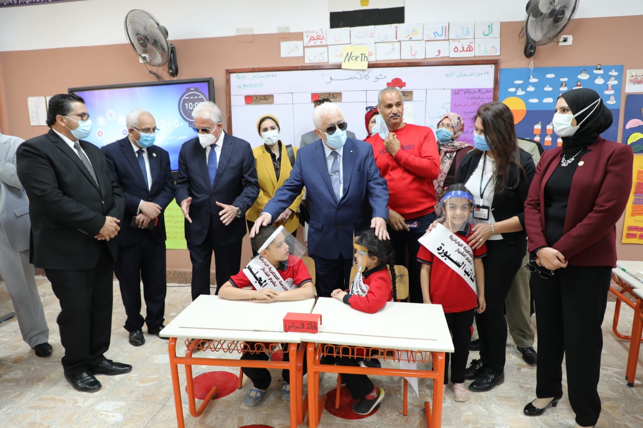 وحرص الوزير والمحافظ علي متابعة بعض أنشطة التوكاتسو للطلبة داخل الفصل، والاستماع إلى المدرسين والطلاب حول نظام التعليم في المدرسة.