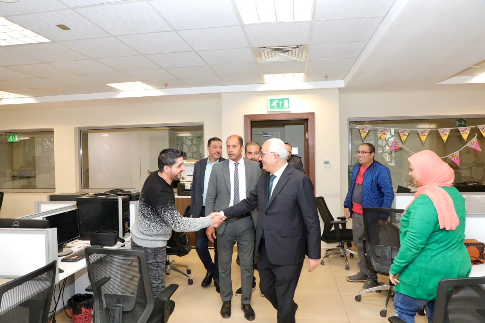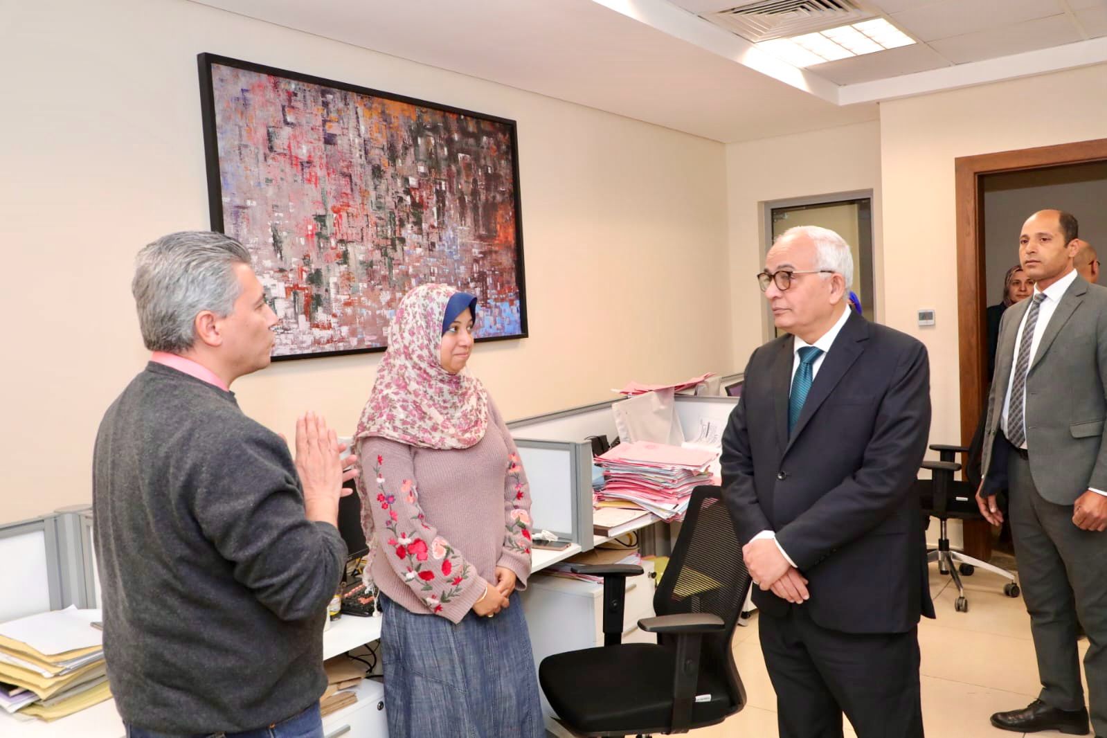 كما تفقد وزير التربية والتعليم مكاتب العاملين بديوان عام الوزارة، حيث تفقد مكاتب العاملين بإدارات الشئون المالية، والمخزون السلعى، والتعاقدات، والتطوير المؤسسي، ونظم المعلومات، وحصر الوظائف، موجهاً بتشكيل لجنة لتحديد أدوار واختصاصات بعض الإدارات لازالة أية معوقات والحفاظ على سير نظام العمل، فضلاً عن منع أي تداخل فى التخصصات.