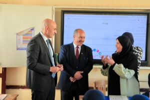 ثم توجه السيد الوزير محمد عبد اللطيف لمدرسة “إمام ناصف الثانوية بنات” بإدارة الزرقا التعليمية والتى تضم عدد ١٢٦٤ طالبة، وخلال تفقد المدرسة تحاور الوزير مع عدد من الطالبات داخل فصول الصف الأول الثانوي، واستمع إلى آرائهن حول مدى استفادتهن من مادة البرمجة والذكاء الاصطناعي، حيث أكد عدد كبير بعض الطالبات إتمامهن المحتوى التعليمى على منصة “كيريو” اليابانية، كما أكدن أن دراسة هذه المادة ساهمت في تطوير مهاراتهم وقدراتهن، وأعربن عن تطلعهن للحصول على الشهادة الدولية المعتمدة من جامعة هيروشيما عقب إتمام اختبار “توفاس” وهو ما ثمنه السيد الوزير ، مؤكدا أن تعلم البرمجة يمثل أحد المحاور الأساسية لبناء قدرات الطالب المصري في العصر الرقمي، لما يوفره من مهارات تفكير حديثة قائمة على التحليل وحل المشكلات والإبداع، فضلًا عن دوره في تعزيز قدرات الطلاب على الابتكار والتجريب وتنمية التفكير المنطقي، وتأهيلهم للمنافسة في مجالات التكنولوجيا المتقدمة والذكاء الاصطناعي ومواكبة التطورات العالمية.