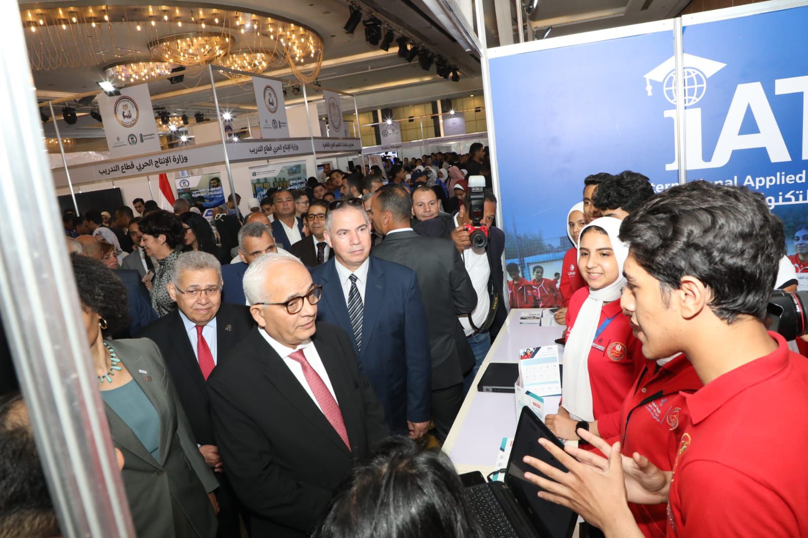 الوزير يكرم 30 خريج من أوائل المدارس الفنية المختلفة..ويتفقدان المعرض العالمى المخصص لمدارس التكنولوجيا التطبيقية