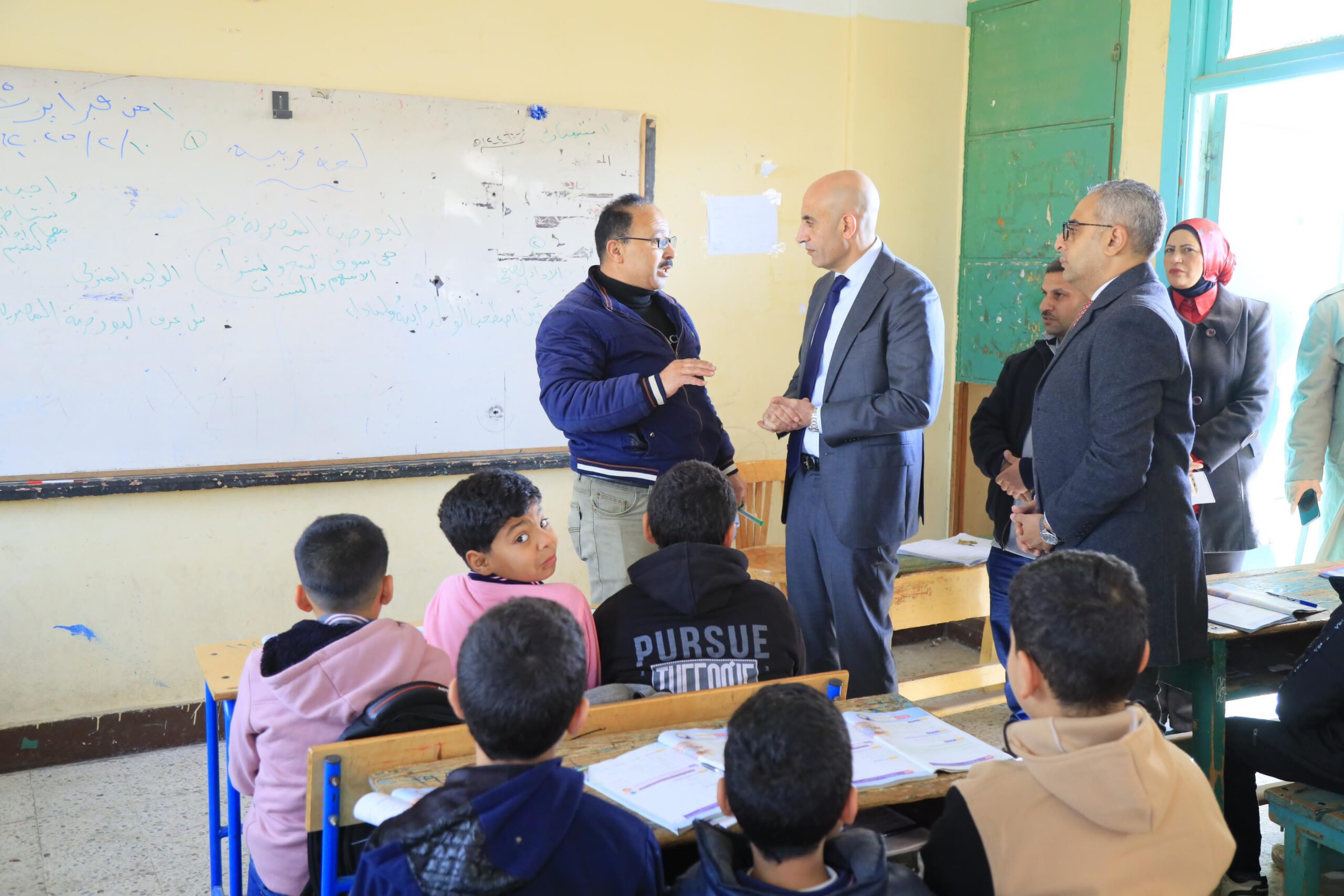 كما تفقد الوزير أحد فصول الصف الرابع الابتدائي، أثناء شرح مادة الرياضيات، وأشاد الوزير بدور معلمة الرياضيات واهتمامها بالشرح وكراسات الحصة والتدريبات.