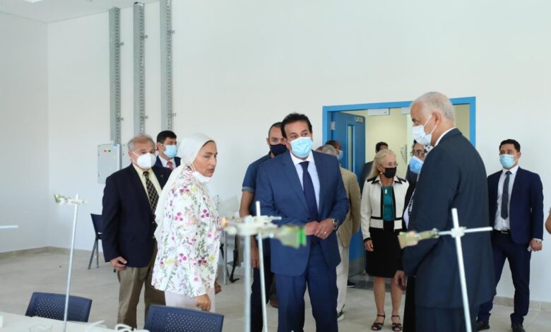 واستمع الوزير إلى عرض توضيحي للتطورات التي شهدتها جامعة العلمين الدولية على المستوى التعليمي والبحثي، منذ بدء الدراسة بها وحتى الآن.