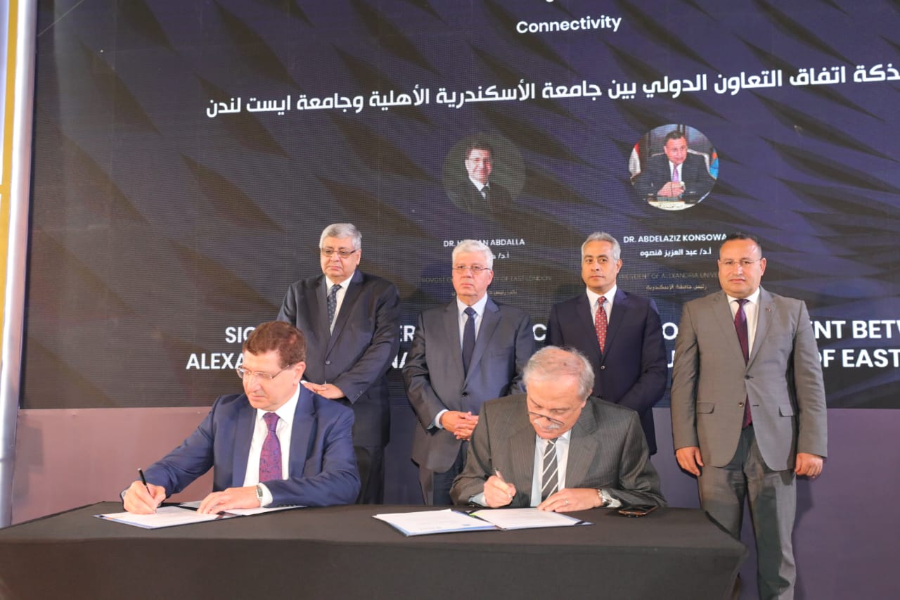 (الثالث) اتفاقية تعاون بين جامعة الإسكندرية الأهلية وجامعة إيست لندن؛ بهدف تطوير عدد من الجوائز المزدوجة لتشجيع الابتكار فى مجالات العلوم الصحية الرياضية المتكاملة، والهندسة وعلوم الكمبيوتر، والإعلام والاتصال، والفنون والتصميم، وإدارة الأعمال وريادة الأعمال، والضيافة والفعاليات والسياحة، والقانون والشرطة والعدالة، وكذلك تعزيز التعاون فى تقديم عدد من الخدمات التعليمية، وتوفير التدريب لأعضاء هيئة التدريس.