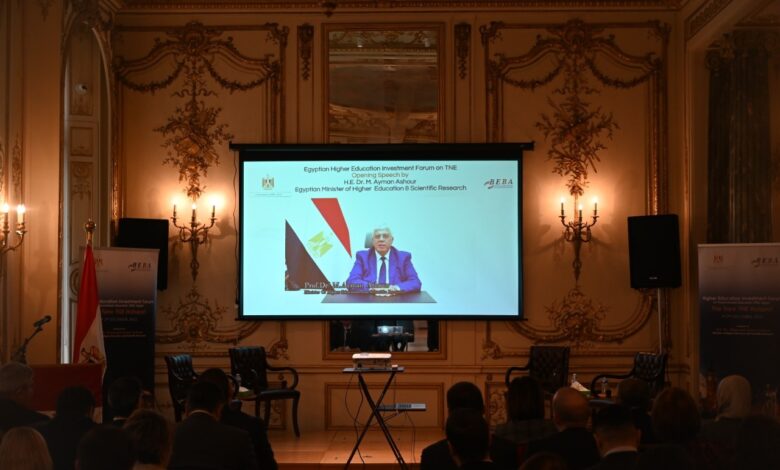 وفي كلمته، أكد د. أيمن عاشور في كلمته المُسجلة على اهتمام مصر بالاستثمار في التعليم العالي لمواكبة الزيادة الكبيرة في السكان، مشيرًا إلى أن الحكومة المصرية تنظر للتعليم العالي كمفتاح للتنمية الاجتماعية والاقتصادية، وتسعى لتأكيد مكانتها كمركز إقليمي للتعليم العالي في المنطقة، مؤكدًا على أهمية دور رجال الأعمال باعتبارهم من الشُركاء الأساسيين في عملية الاستثمار بالتعليم ومشاركة الحكومة في الاستثمار في التعليم العالي.