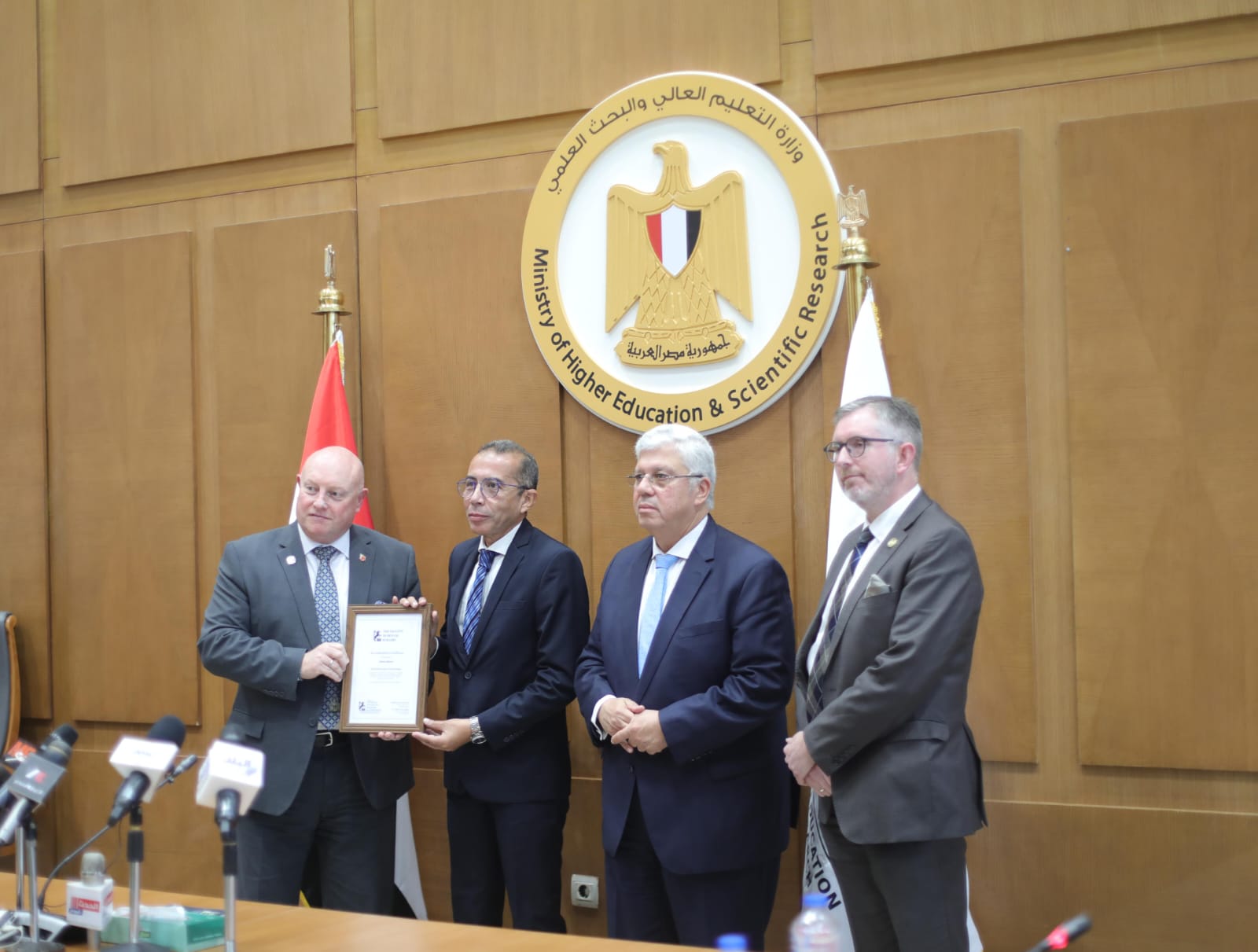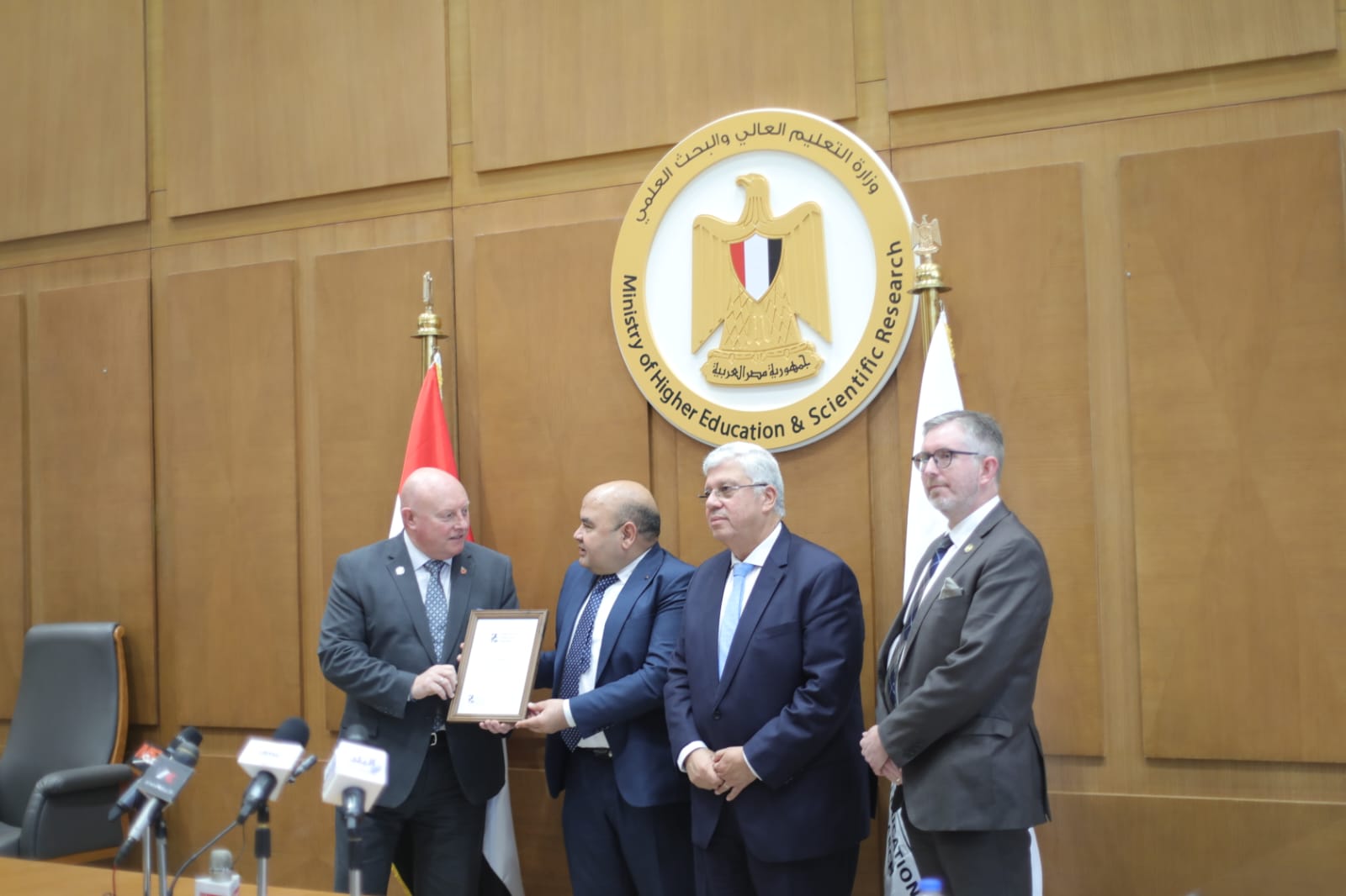 وقع الاتفاقية عن الجانب المصري، ممثلًا عن وزارة التعليم العالي والبحث العلمي، د.مصطفى رفعت أمين عام المجلس الأعلى للجامعات، وعن الجانب الإنجليزي، البروفيسور تيم جراهام نائب رئيس الكلية الملكية للجراحين بأدنبرة (RCSEd).