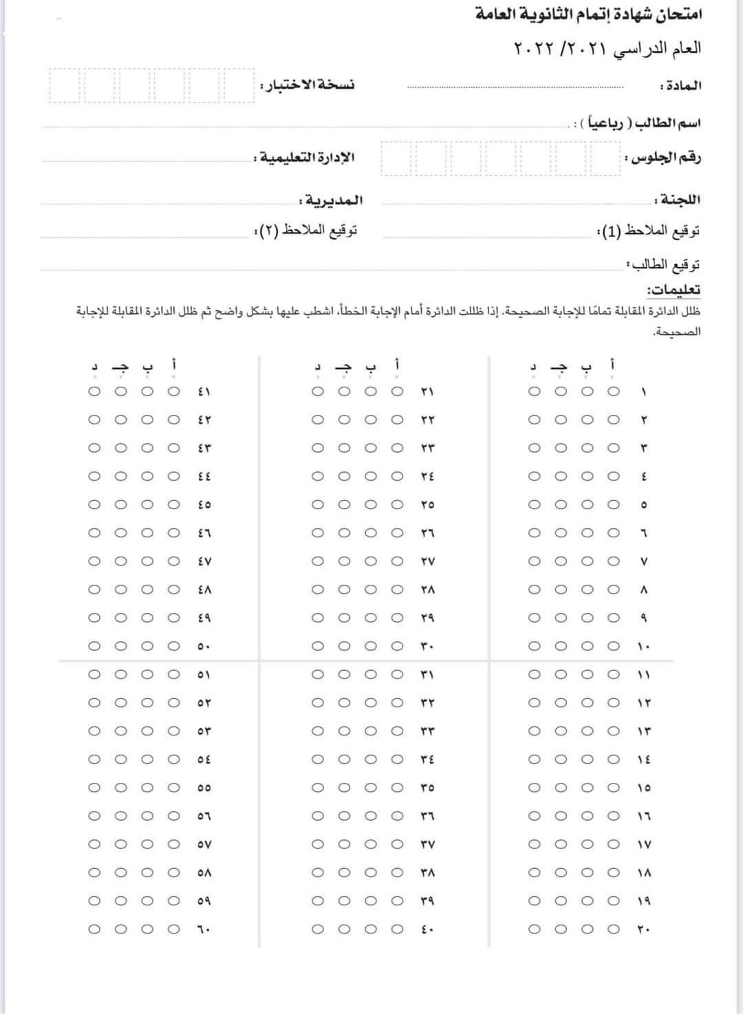 يمكن للطالب طباعة النماذج المرفقة والتعود عليها قبل الامتحانات مع تمنيات الوزارة لكل الطلاب بالتوفيق والنجاح الباهر وتحقيق احلامهم باذن الله.