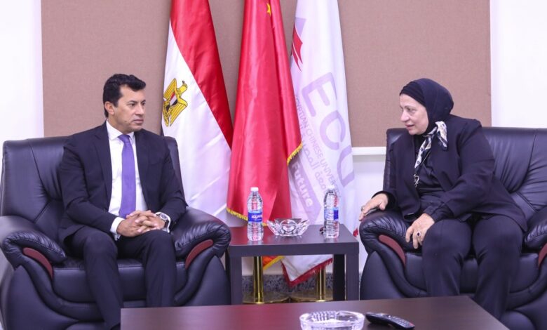 استقبلت الجامعة المصرية الصينية الدكتور أشرف صبحي وزير الشباب والرياضة، بمقرها الجديد بمدينة نصر، وكان في استقباله الدكتورة كريمة عبد الكريم رئيس مجلس أمناء الجامعة، وأعضاء المجلس وعمداء الكليات.وذكر بيان صادر اليوم عن الجامعة المصرية الصينية أن الدكتور أشرف صبحي وزير الشباب والرياضة أكد – في كلمة له خلال الزيارة – أن الجامعة المصرية الصينية، تضم كثير من الأبطال المميزين رياضيا والذين من المتوقع أن يكون لهم مستقبل كبير في الفترة المقبلة على المستوى الأولمبي والعالمي، مشددا على أن الرئيس عبد الفتاح السيسي يولي اهتماماً كبيراً بالرياضة ويصفها بالأمن القومي، حيث نوه الرئيس في أكثر من مناسبة على أهمية ممارسة الرياضة والاعتناء بالجانب البدني للشباب وتطوير القدرات الذهنية والنمو الجسدي والاهتمام بوجود الرياضة في مختلف المدارس والجامعات، وذلك بالتعاون بين وزارات الشباب والرياضة، والتربية والتعليم والتعليم العالي.