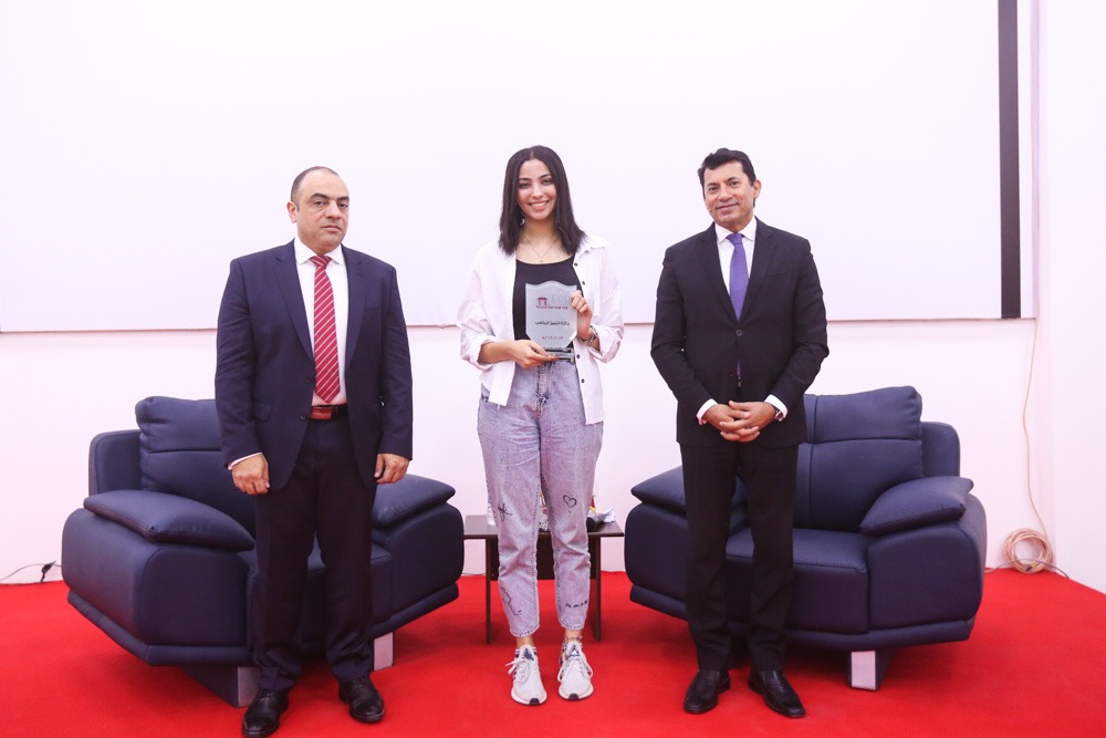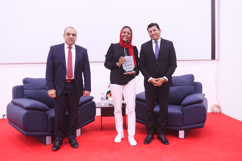 وكرم الدكتور أشرف صبحي، فاطمة عبد الناصر الطالبة بكلية العلاج الطبيعي و لاعبة منتخب مصر للكاراتيه وبطلة العالم للشابات 2023 الحاصلة على وسام الرياضة من فخامة السيد رئيس الجمهورية عبد الفتاح السيسي، وعبد الله إسماعيل الطالب بكلية الهندسة والتكنولوجيا ولاعب منتخب مصر لكرة لسرعة وصاحب فضية بطولة العالم بفرنسا عام 2019 وعمرو إبراهيم الطالب بكلية الهندسة والتكنولوجيا ولاعب منتخب الجامعة المصرية الصينية وصاحب المركز الثاني في بطولة الاتحاد الرياضي للجامعات لكرة السرعة.