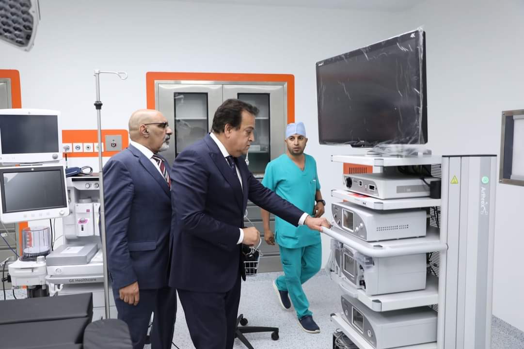 وأوضح «عبدالغفار» أن الوزير تفقد كافة أقسام ووحدات المستشفى، ومنها قسم الطوارئ وغرفة عمليات الطوارئ، والغسيل الكلوي والذي يضم 24 ماكينة غسيل كلوي، وقسم العلاج الطبيعي والذي سيتم تجهيزه بأحدث الأجهزة المستخدمة عالميًا لخدمة المرضى، كما حرص الوزير على تفقد وحدة العناية المركزة بقوة 22 سرير، ووحدة القسطرة القلبية، وغرف العمليات الجراحية بسعة 8 غرف عمليات، وغرفة عمليات القلب المفتوح، كما تفقد الوزير وحدة مناظير الجهاز الهضمي والقنوات المرارية، والاستقبال.