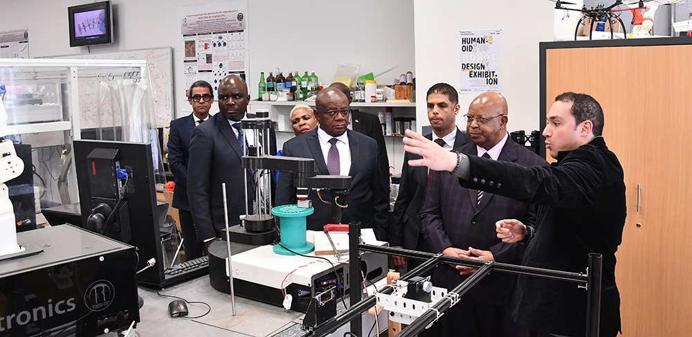 كما شهد اللقاء تقديم السيد جايكوب موديندا رئيس البرلمان محاضرة بعنوان “تعزيز التعليم الجامعي من خلال مبادرة خاصة – تجربة للمحاكاة ” أعرب خلالها عن سعادته بزيارة الجامعة للمرة الاولى ، ورؤيته حجم الإنجازات الموجودة بها ، لافتاً إلى أنها تعد جامعة رائدة في التعليم و البحث العلمي التطبيقي ، جاءت برؤية بناء مركز رائد للتميز في التدريس والبحث العلمي يسهم بشكل فعال في تحقيق التعاون العلمي والتقني والاقتصادي والثقافي على الصعيد الوطني و الدولي ، وأضاف بأنها أول جامعة في افريقيا بحرمها مجمعاً صناعياً.