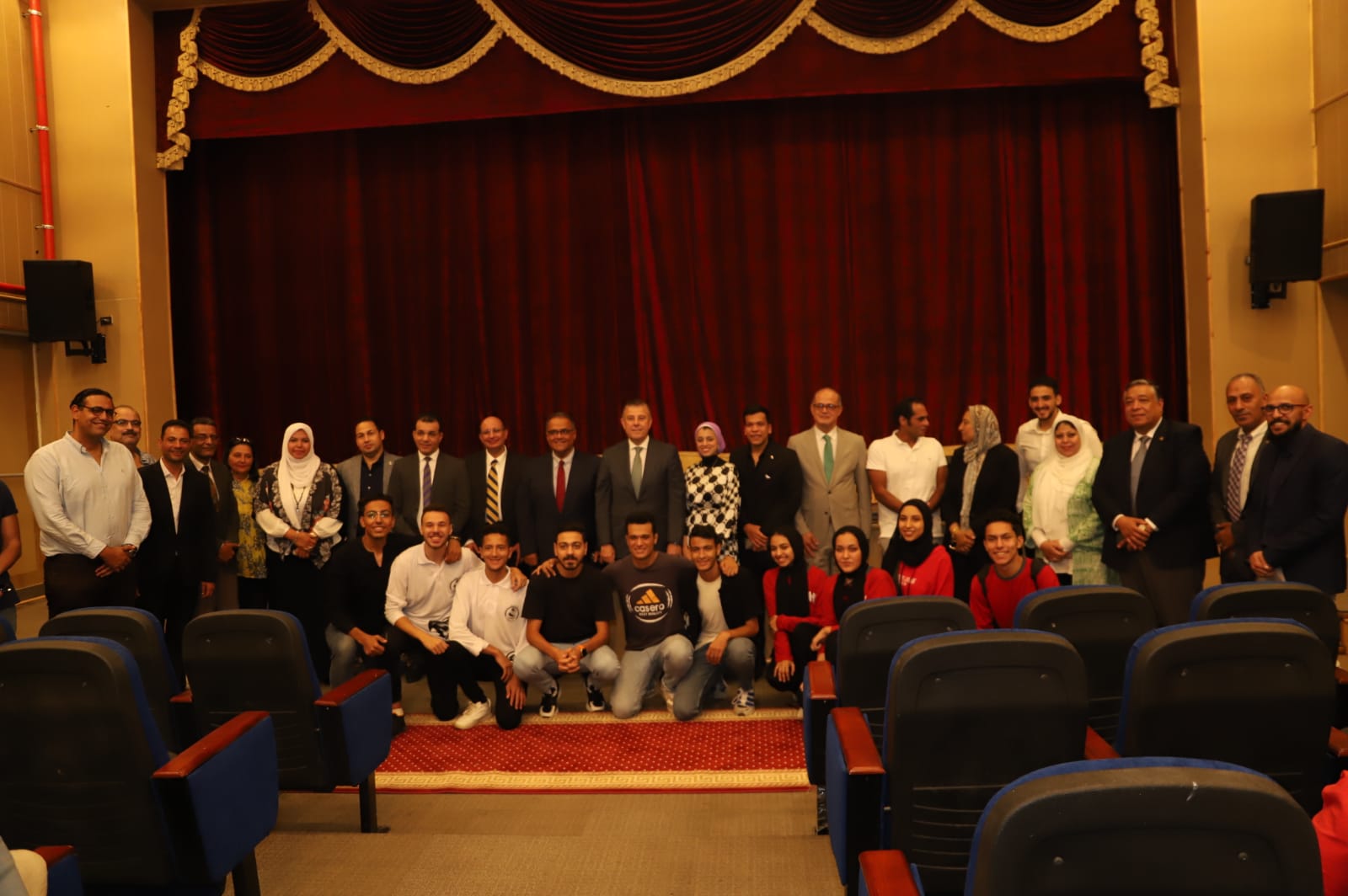 افتتح اليوم د. محمود المتينى رئيس جامعة عين شمس و أ.د. عبد الفتاح سعود نائب رئيس الجامعة لشئون التعليم والطلاب مسرح جامعة عين شمس ” مسرح أ.د.محمود عودة” بعد تجديده بحضور أ.د. أيمن صالح نائب رئيس الجامعة لشئون الدراسات العليا والبحوث و أ.د. غادة فاروق نائب رئيس الجامعة لشئون خدمة المجتمع وتنمية البيئة و أ. د. تامر راضي مستشار نائب رئيس الجامعة لشئون التعليم والطلاب و الكابتن أنور الكمونى مؤسس حملة مانحى الأمل العالمية أ.د. ريم الكباريتي مدير رابطة الخرجين بالجامعة و أ.د.ياسر مجاهد مدير مركز الاستشارات الهندسية بالجامعة و أ.د. حاتم ربيع رائد أسرة طلاب من أجل مصر وأ. ريهام العطيفى القائم بتسيير أعمال امين قطاع شئون التعليم والطلاب و أ. ابراهيم سعيد القائم بأعمال أمين مساعد قطاع شئون خدمة المجتمع وتنمية البيئة و مدير مكتب نائب رئيس الجامعةلشئون التعليم والطلاب و أ. طارق أحمد القائم بأعمال مدير عام رعاية شباب الجامعة ولفيف من مديري إدارات رعاية الشباب والعاملين بالجامعة والطلاب