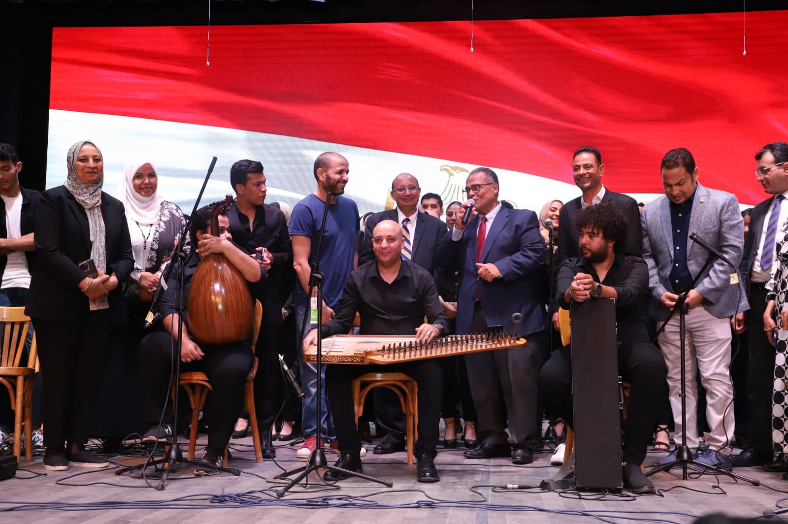 وقد أبدع طلاب وطالبات منتخبات الجامعة فى تقديم حفل متنوع بدء بأغنية من أجل مصر ثم