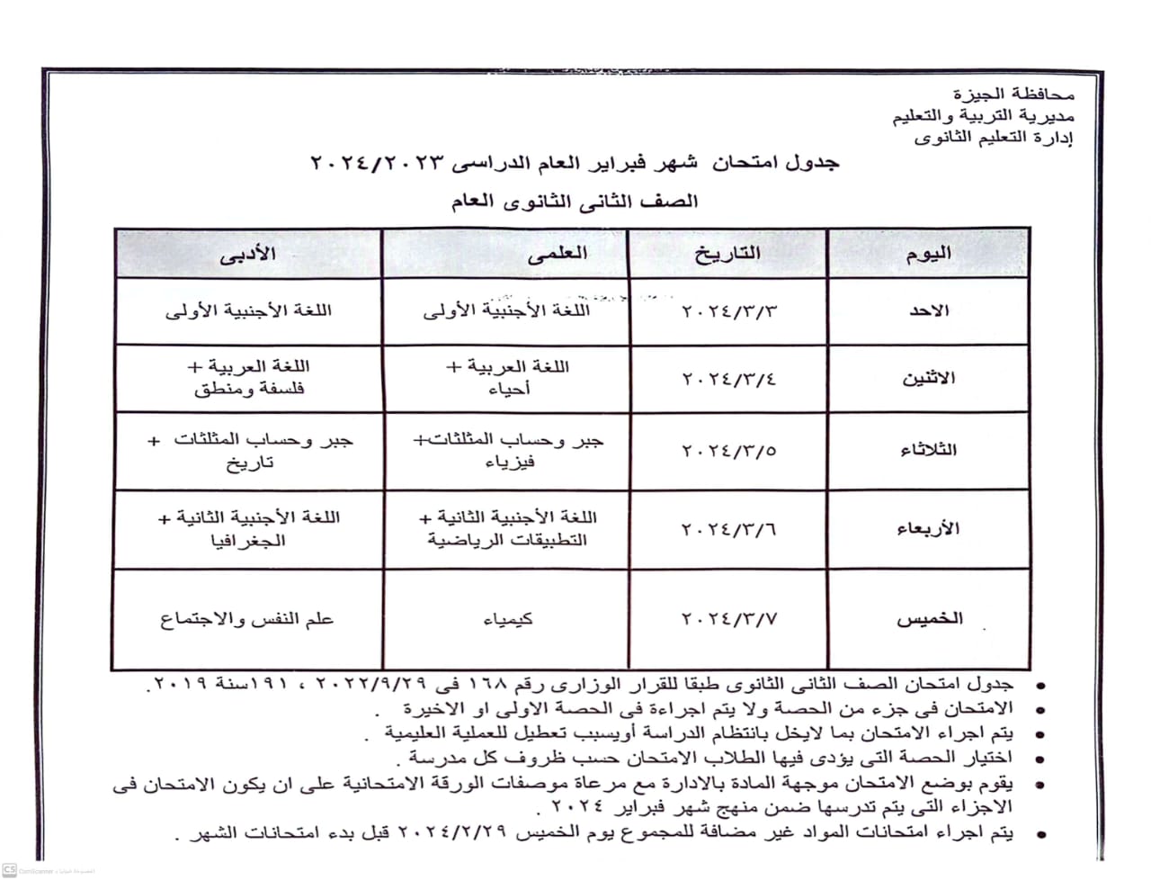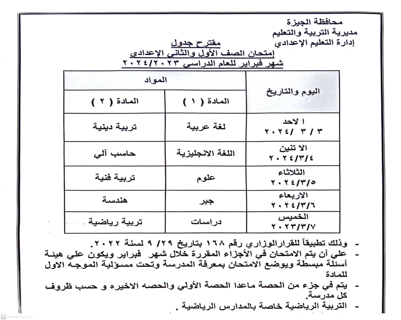 أكد أشرف سلومة وكيل الوزارة انطلاق امتحانات شهر فبراير 2024 لجميع المراحل ” ابتدائى وإعدادى و ثانوى “لطلاب مدارس تعليم الجيزة بداية من يوم الأحد 3 مارس 2024 وفقا للجداول المعلن.