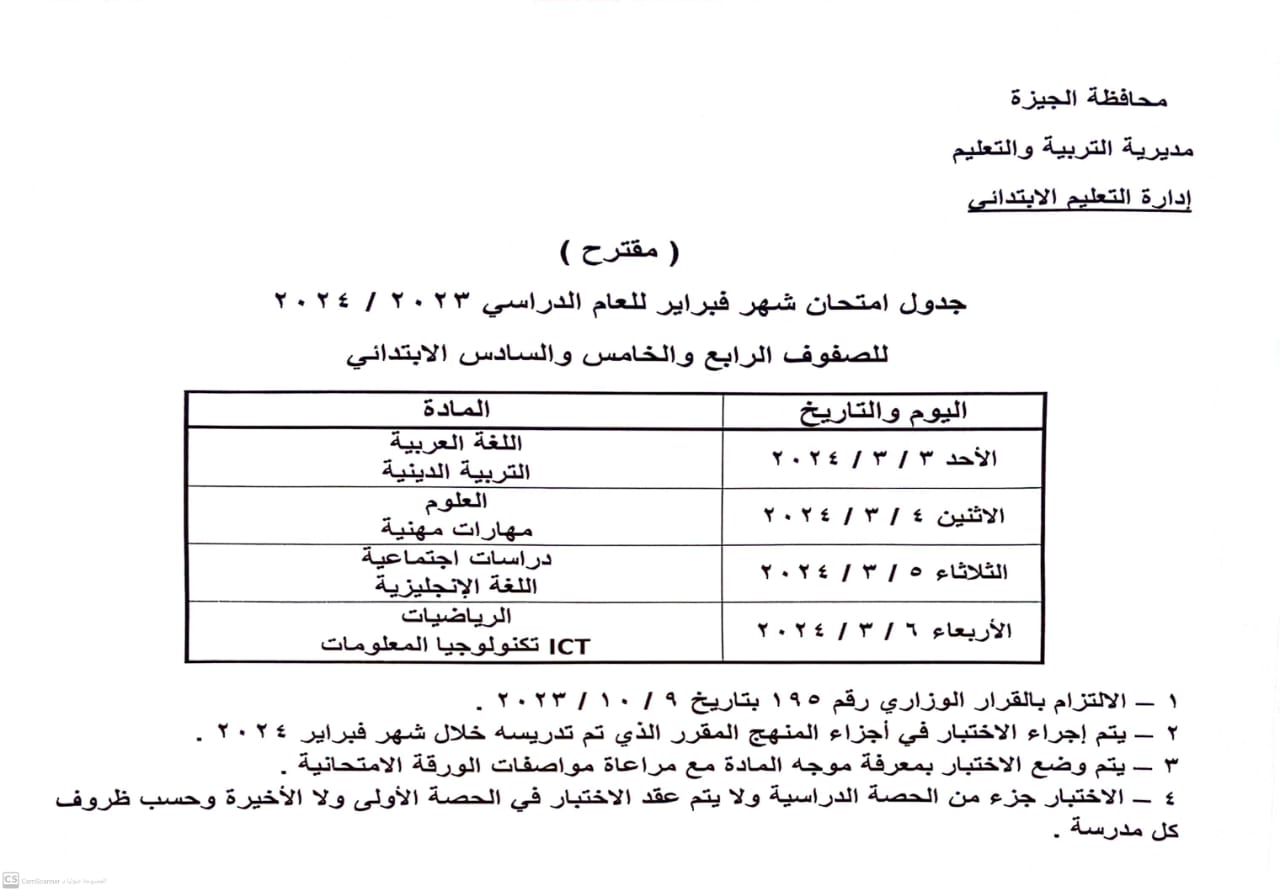 3 مارس انطلاق امتحانات شهر فبراير بتعليم الجيزة
